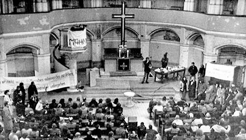 Desde los acuerdos de 1978 entre Erich Honecker y la Iglesia luterana -conocidos como ′Kirche im Sozialismus′, la Iglesia en el socialismo- el Estado del Este reconocía la autonomía de las parroquias. Se toleraba así la libertad de expresión en cuestiones religiosas, aunque como dice Granda, ′a cambio (se) esperaba que los dirigentes eclesiásticos controlarán su rebaño′. La Stasi -el Ministerio de Seguridad del Estado, que servía de Inteligencia de la República Democrática Alemana- dedicó todo un departamento -el XX4- para infiltrarse en las iglesias.