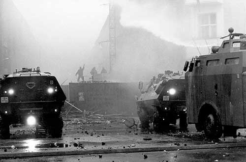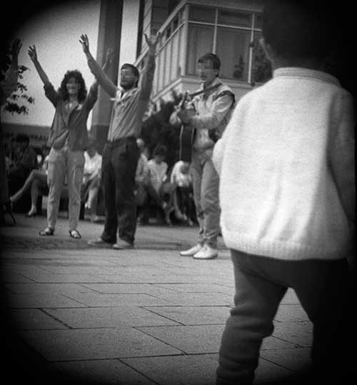 Lo asombroso es que la ′Volkspolizei′ -la policía de la RDA, conocida popularmente como Vopo- vigilaba todo a una distancia prudente. Los agentes decidieron no intervenir. Se limitaron a hacer una llamada a la central y esperaron ordenes, que no llegaron. Lo cierto es que casi treinta cabezas rapadas se enfrentaron a más de quinientas personas y cuando llegaron los refuerzos policiales, la plaza delante de la iglesia estaba ya despejada. En el juicio se supo que hubo numerosos heridos, algunos de gravedad y todo el mobiliario de la iglesia quedó destrozado.