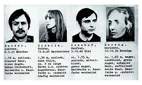 Así un pastor barthiano como Helmut Ensslin, miembro de la Iglesia Confesante, es recriminado por su hija Gudrun por haber estado en el ejército nazi. Ella se casa con el hijo de un escritor nazi que había intentado mantener el cristianismo en oposición al neo-paganismo de Goebbels, Bernward Vesper. Juntos se dedican a la literatura y publican una edición bilingüe de la poesía de Gerardo Diego, a la vez que textos de política radical de izquierdas. Ella acaba fundando con su amante Andreas Baader, la Facción del Ejército Rojo (RAF) -más conocida como Baader-Meinhof-. Detenida por su actividad terrorista, que lleva a la muerte a cuatro personas, es condenada a cadena perpetua. En la cárcel de Stammheim se enfrenta a Meinhof y se suicida después de ella, junto a otros miembros de la banda.