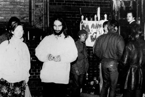 La banda se situó en el presbiterio -como se puede ver en la única foto que hay del concierto- con una Biblia abierta detrás. Algunos de los asistentes están de pie en el púlpito o sentados en las escaleras que llevaban a él. Hay una enorme cruz protestante, o sea sin la figura de Cristo crucificado en el ábside, donde trepan dos personas. En la base hay uno fumando. Erik Weiss hizo la foto, subido a la consola del órgano, junto a uno que tenía la mitad del cráneo afeitado. Se ve a Regener junto al micrófono y al guitarrista Jacob Ilja.